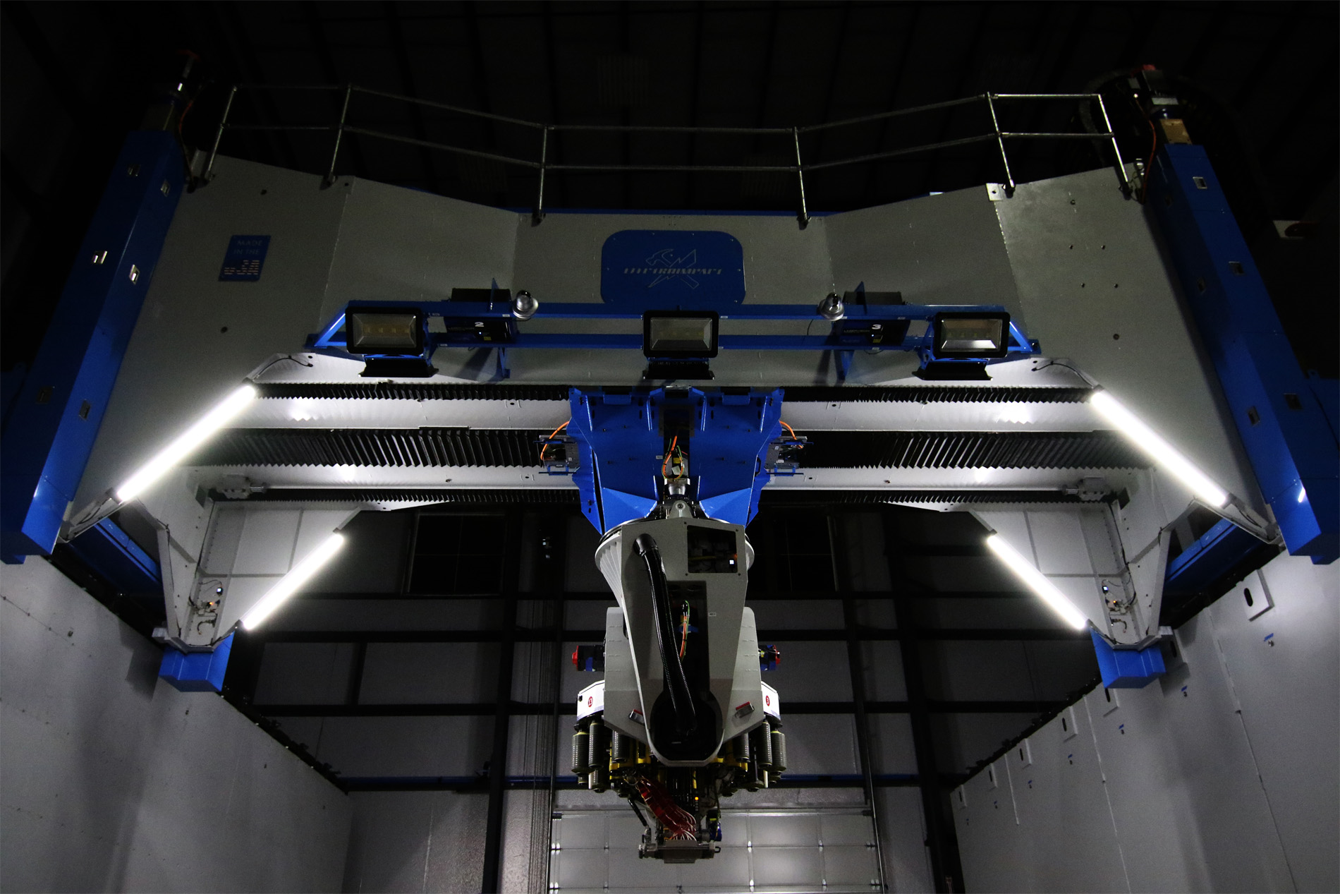 EI Accurate Robot motion platform with 30m X-axis. Originally built for rocket part production, now primarily used for R&D and single build, demonstrator parts.