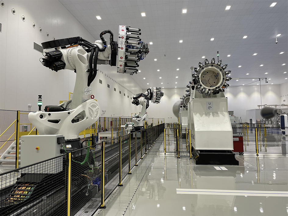 For rotary components, the cell included a horizontal rotator for tools up to 9t and 4.6m diameter and a vertical turntable for parts up to 25t and 4.2m diameter.